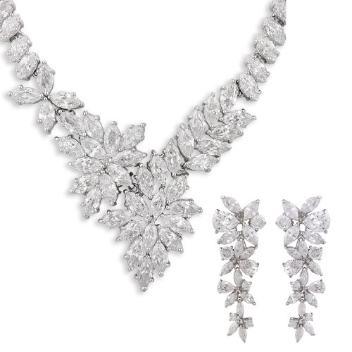 One of my favorites is JanKuo Jewelry Silver Tone Fancy Prom and Bridal Floral Cubic Zirconia CZ Necklace and Earrings Set with Gift Box I always knows JanKuo Jewelry Silver Tone Fancy Prom and Bridal Floral Cubic Zirconia CZ Necklace and Earrings Set with Gift Box, everything is here Click Here for More customer reviews